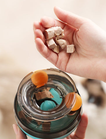 It can also adjust the speed of food leakage. Turn the dial on the side of the toy to adjust the number of leaking holes.
